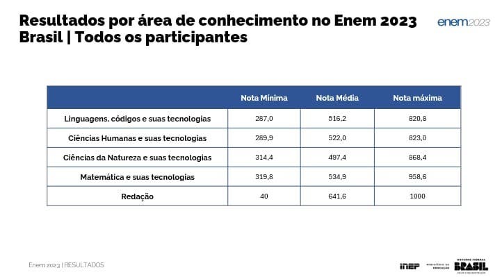 O Ministério da Educação (MEC) divulgou nesta terça-feira, 16, o balanço do resultado do Exame Nacional do Ensino Médio (Enem) 2023.