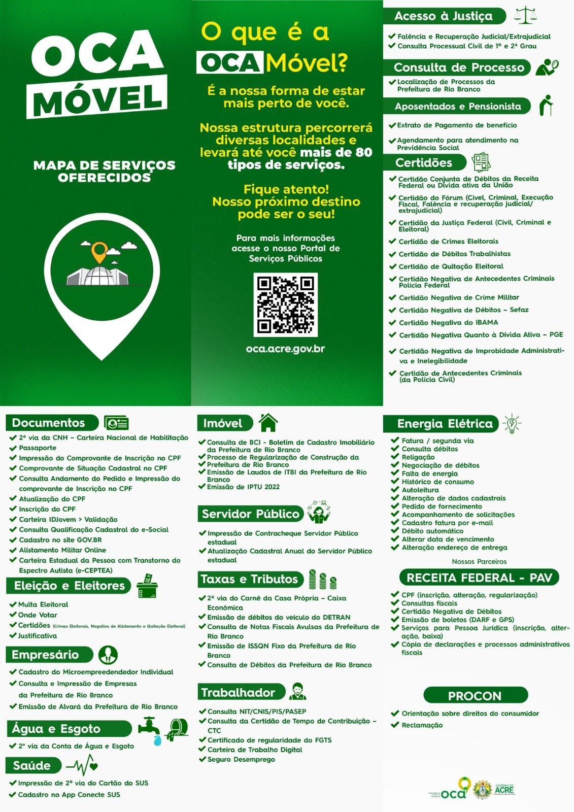 Nesta quinta, 21, e sexta, 22, de 8h às 12h, a OCA estará com ação no Instituto Federal do Acre, localizado no bairro Xavier Maia, parte alta da capital. Na ocasião, mais de 80 serviços estarão disponíveis à população.