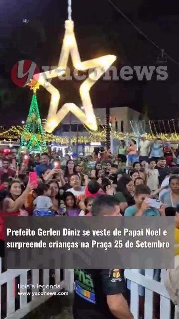 SENA MADUREIRA (AC) — A Praça 25 de Setembro ficou lotada na noite deste sábado (20) com uma festa natalina que reservou uma surpresa especial para as famílias do município: o Papai Noel que desceu pela roda gigante e encantou as crianças era o próprio prefeito Gerlen Diniz.