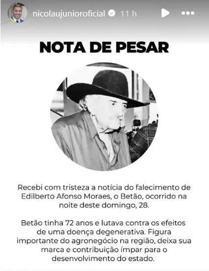 Reconhecido como uma das personalidades importantes do agronegócio acreano, Betão construiu uma trajetória marcada por trabalho e dedicação, com contribuições significativas para o desenvolvimento econômico do estado. Em seu comunicado, Nicolau Júnior destacou o legado deixado pelo pecuarista.