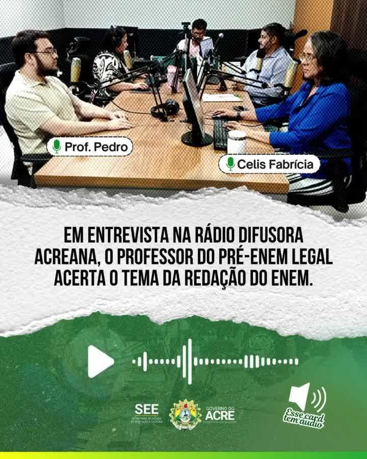 Rio Branco, AC – O professor Pedro Henrique, do programa Pré-Enem Legal no Acre, ganhou destaque ao prever com precisão o tema da redação do Enem 2025: “Perspectivas acerca do envelhecimento na sociedade brasileira”. A acertada previsão causou surpresa e admiração entre alunos e colegas.