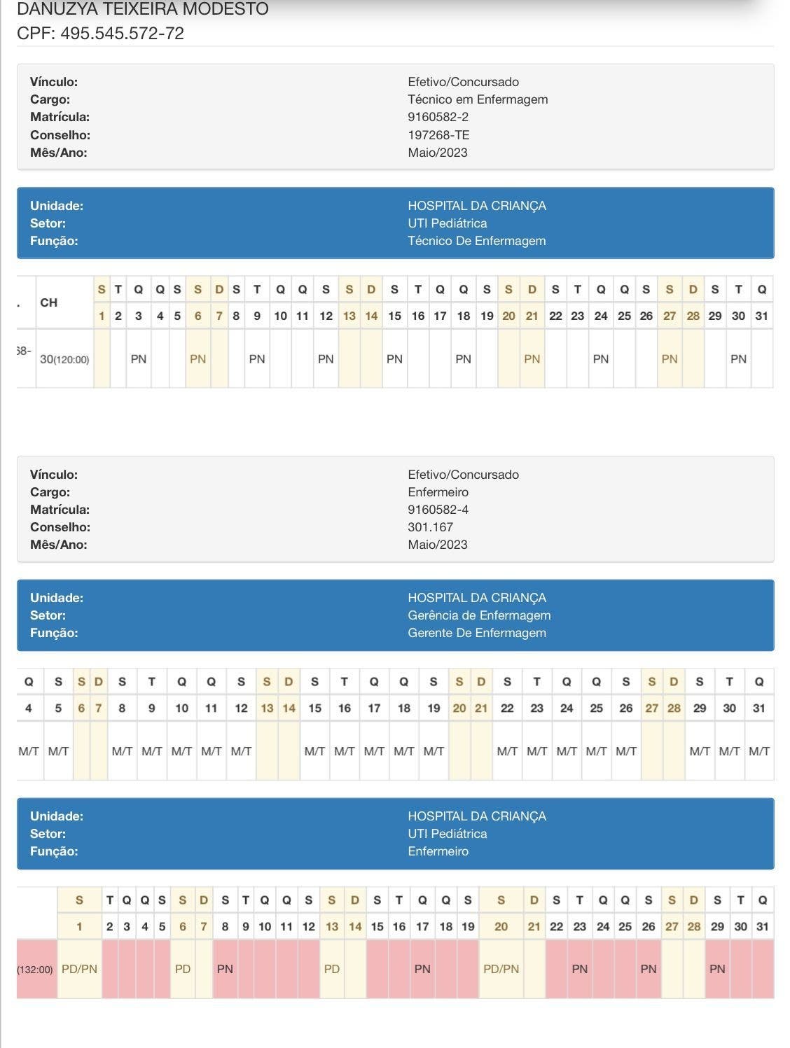 Os denunciantes alegam ainda que a coordenadora teria contratos como enfermeira e técnica de enfermagem e que como técnica ela não atua dentro da unidade na Unidade de Tratamento Intensivo (UTI). Além disso, os denunciantes alegam que a coordenadora é protegida pela gerente geral e, por isso, faz horas extras e plantões quando quer.