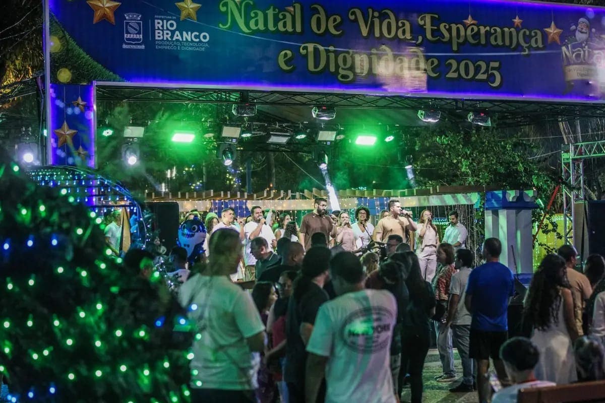 RIO BRANCO (AC) — A Praça da Revolução ficou cheia de gente na tarde e noite deste sábado (20) durante a programação “Natal de Vida, Esperança e Dignidade”, promovida pela Prefeitura de Rio Branco. A atração principal foi a iluminação natalina, que reuniu famílias de diversos bairros da capital para curtir o clima festivo.