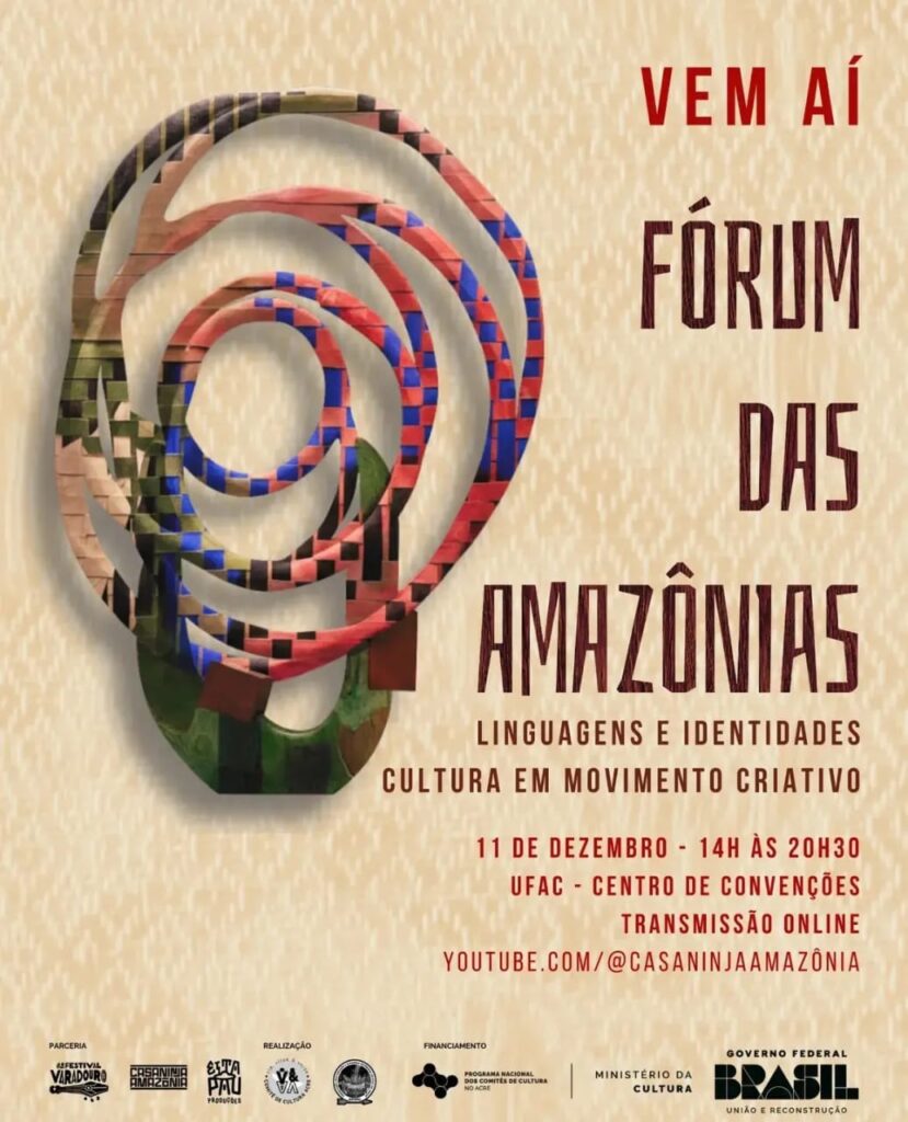 Rio Branco, AC – No dia 11 de dezembro, a cidade receberá o Fórum das Amazônias: Linguagens e Identidades – Cultura em Movimento Criativo, uma iniciativa que busca fortalecer e valorizar a produção cultural da região. O evento será realizado no Centro de Convenções da Universidade Federal do Acre (Ufac), das 14h às 19h30, reunindo uma diversidade de vozes que contribuem para a construção e transformação dos territórios amazônicos por meio da arte e da cultura.