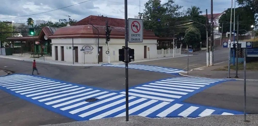A Prefeitura de Rio Branco está implementando um importante projeto de revitalização das faixas de pedestres na cidade, visando melhorar a segurança e a mobilidade urbana. O novo padrão, com pintura azul e branca, já está sendo aplicado em locais estratégicos de grande fluxo de veículos e pedestres, principalmente na região central e em avenidas principais.