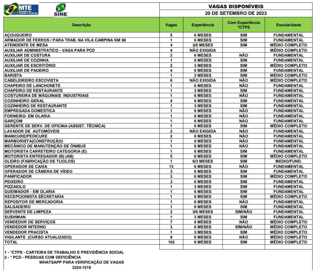 Para quem já possui cadastro, e tem interesse em uma das vagas, pode entrar em contato por meio do WhatsApp nos números: (68) 3223-6502; (68) 3224-5094; (68) 3224-1519 ou 0800 647-8182
