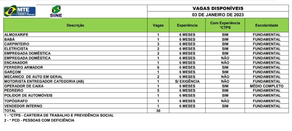 Sine oferta 30 Confira vagas de emprego para Rio Branco nesta terça-feira, 03