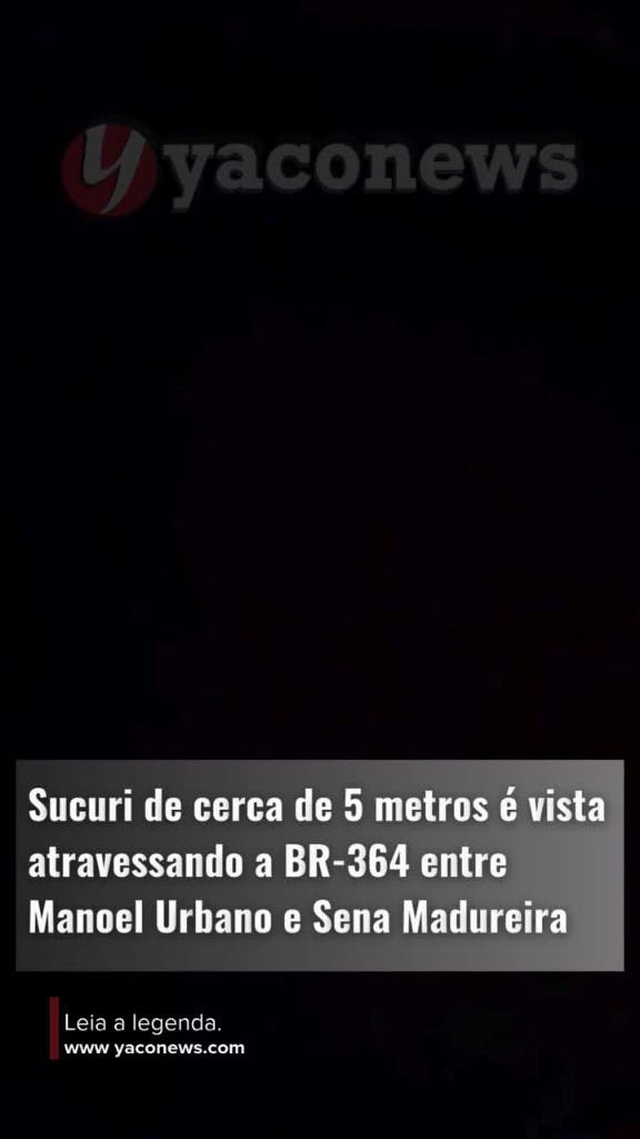 MANOEL URBANO/SENA MADUREIRA (AC) — Um morador da região registrou a passagem de uma sucuri de aproximadamente cinco metros de comprimento pela BR-364, no trecho que liga Manoel Urbano e Sena Madureira, no interior do Acre. O registro surpreendeu a testemunha, que destacou o grande porte do réptil.