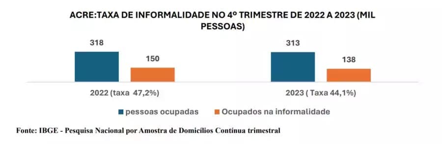 Apesar dos desafios, os números indicam uma melhora no ambiente econômico do Acre. Mesmo com um investimento governamental relativamente baixo, o crescimento do PIB nacional estimado em 3% contribuiu para um ambiente econômico mais favorável, levando os empresários a contratarem mais trabalhadores, inclusive com carteira assinada, o que contribuiu para a redução da informalidade. Esses são bons indicadores que refletem uma perspectiva positiva para o mercado de trabalho no estado.