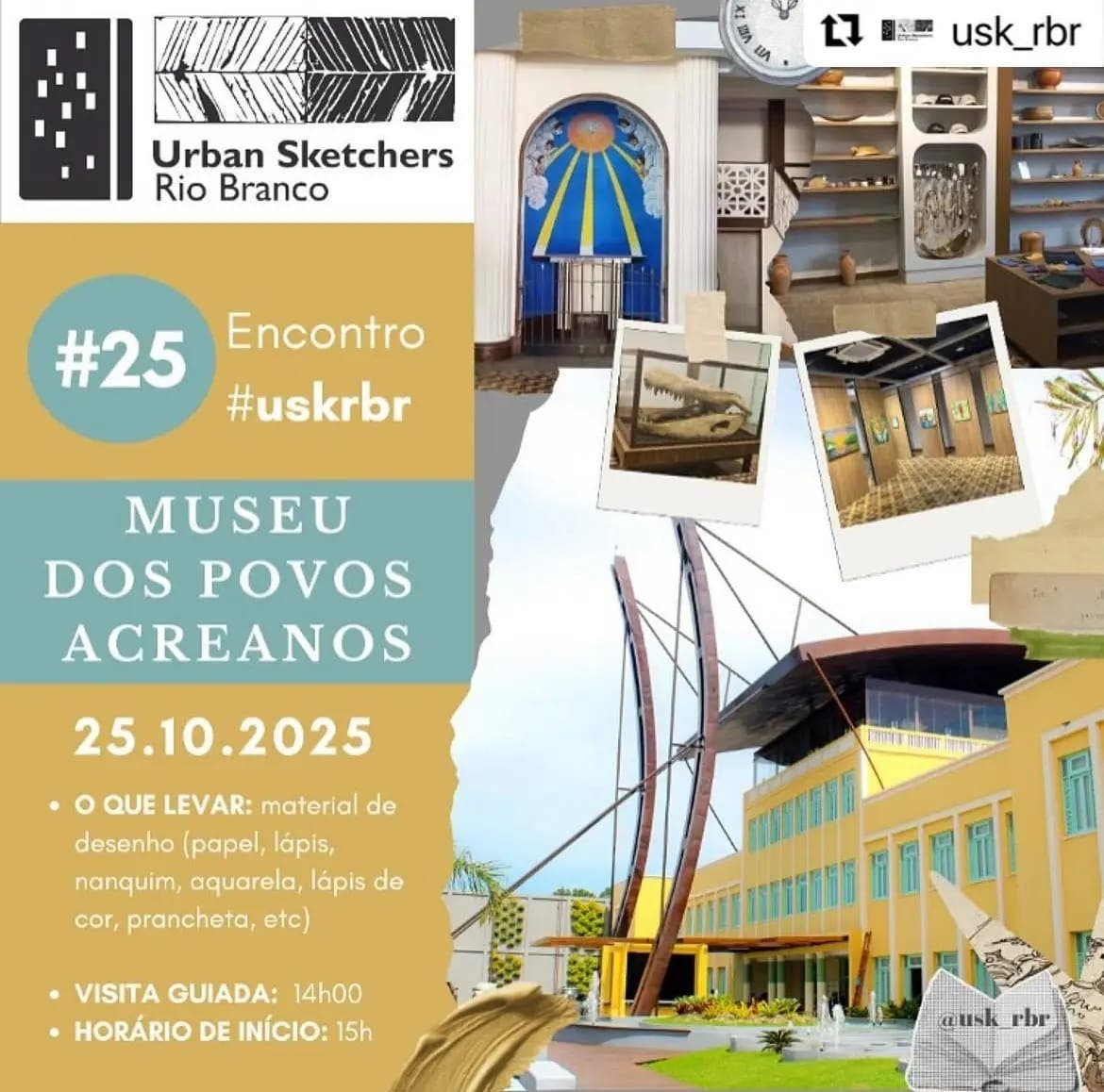 Rio Branco, AC – O grupo Urban Sketchers Rio Branco realizará, neste sábado, 25 de maio, um encontro especial de arte urbana no Museu dos Povos Acreanos. O evento, aberto ao público, convida desenhistas, artistas e entusiastas a registrar a cidade através do desenho e da observação direta.