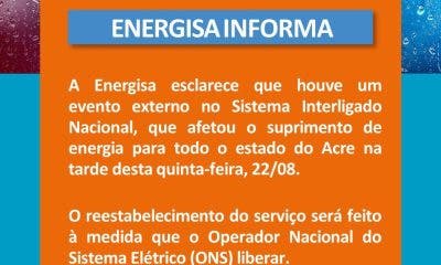 Todos os municípios do estado do Acre sofreram um apagão na tarde desta quinta-feira (22), de acordo com a Energisa. O apagão ocorreu por volta das...