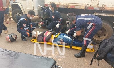 O motociclista Douglas Alexsandro da Silva Rocha, 23 anos, ficou gravemente ferido após bater e parar embaixo de um caminhão, no início da tarde desta terça-feira...