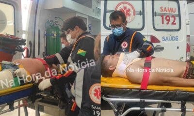 O motorista Francisco Cruzne e o passageiro Vanderson Viera da Silva, 19 anos, ficaram gravemente feridos após a colisão entre um veículo de passeio e um...