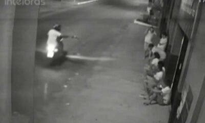 Câmeras de segurança registraram o momento em que dois suspeitos em um motocicleta passaram atirando contra cinco detentos que esperavam para entrar na Unidade Prisional de...