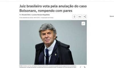 O voto do ministro Luiz Fux, do Supremo Tribunal Federal (STF), repercutiu na imprensa internacional, nesta quarta-feira, 10. Fux foi o terceiro a se manifestar no...
