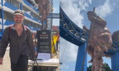O artista dinamarquês Jens Galschiet levou sua escultura A praga laranja à Marcha Global pelo Clima neste sábado, 15, em Belém (PA). A obra faz uma...