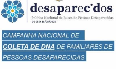 O Acre participa da Campanha Nacional de Coleta de DNA de Familiares de Pessoas Desaparecidas, iniciativa do Ministério da Justiça e Segurança Pública que acontece de...