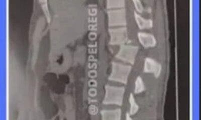 Uma tomografia mostra a lesão nas costas de Regilâneo da Silva Inácio, de 42 anos, que foi atingido por um aparelho em uma academia em Juazeiro...
