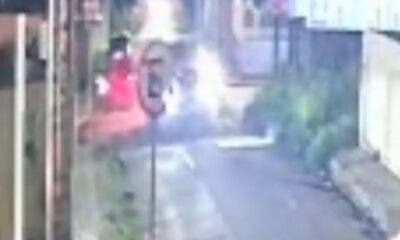 Imagens registradas por uma câmera de segurança mostram o momento exato em que um mototaxista é atropelado por uma caminhonete e a motocicleta é arrastada por...