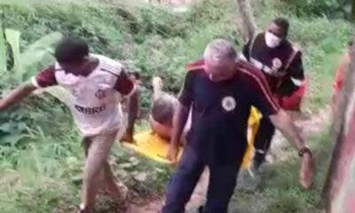 Moradores do bairro de Itatinga, em São Sebastião, no litoral de São Paulo, fizeram uma corrente humana para resgatar duas crianças que ficaram ilhadas após as fortes chuvas que...