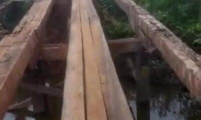Os moradores do Ramal da Lua, localizado no km 30 da estrada de Boca do Acre, improvisam trapiche para fazerem travessia e não ficarem isolados do...