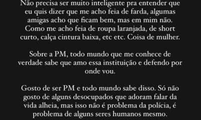 Uma postagem da Policial Militar do Estado do Acre, Vanessa Soares, não agradou alguns dos seus pouco mais de 5 mil seguidores na plataforma Instagram. No...