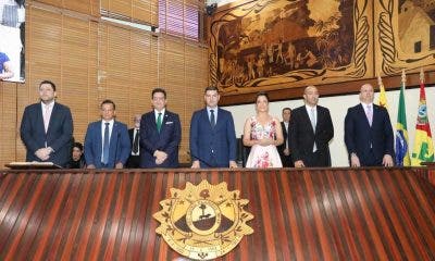 O presidente da Assembléia Legislativa, Nicolau Júnior e o primeiro secretário da mesa diretora, Luiz Gonzaga, deram posse ao governador Gladson Cameli e a vice Mailza...