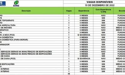 O Sistema Nacional de Emprego do Acre (Sine), está ofertando, nesta segunda-feira, 19, 48 vagas de emprego. Dessas, 33 vagas são para quem possui nível fundamental...