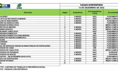 O Sistema Nacional de Emprego do Acre (Sine), está ofertando, nesta terça-feira, 13, 31 vagas de emprego. Para concorrer a uma das vagas, caso a pessoa...
