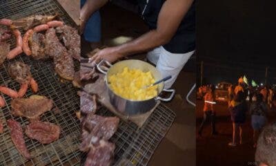 A BR-364 foi fechada nesta segunda-feira (31) por manifestantes que prepararam um churrasco no meio da rodovia federal, próximo ao Parque Industrial, na entrada de Rio...