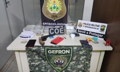 Uma ação envolvendo Polícia Militar, Polícia Civil e Gefron resultou na apreensão de arma de fogo e aproximadamente sete quilos de entorpecentes em Epitaciolândia, no domingo...